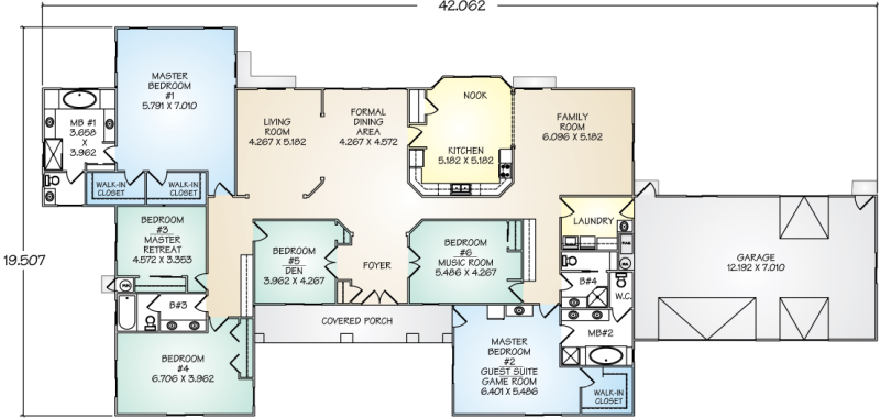 The Phoenix panelized kit home is spacious and flexible in design. A second master suite with private entry provides a retreat for guests or house members; it can also serve as a media, game, or hobby room. Any of the additional bedrooms can also be personalized as a den, study, music room, or master retreat. The expansive living and formal dining area provide an extensive view of the backyard through large windows. Volume and space are emphasized with ten-foot ceilings throughout the Phoenix. The large kitchen and nook open to the family room, as well as through a door to the formal dining area. The Phoenix has four full-size baths and two separate water heater closets. The three-car garage has an additional drive-through access door to the backyard and can easily be used as a hobby or work area with plenty of room left for storage.