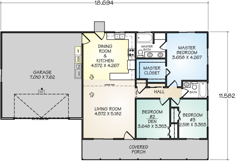The Lakeport panelized kit home is a charming one-story plan. The Lakeport has a covered front porch extends a warm invitation to enter, while a vaulted ceiling combines with the living room and dining room to afford a spacious living area. The master bedroom is designed with a private bath and a large walk-in closet. The oversize two-car garage provides a generous space for multiple vehicles.